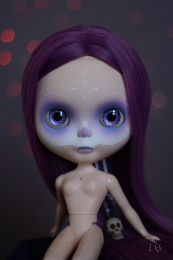 She is a heather sky with a rerooted scalp by Immunoblythe. Our inspiration for her was a bit of Tara McPherson and my art.